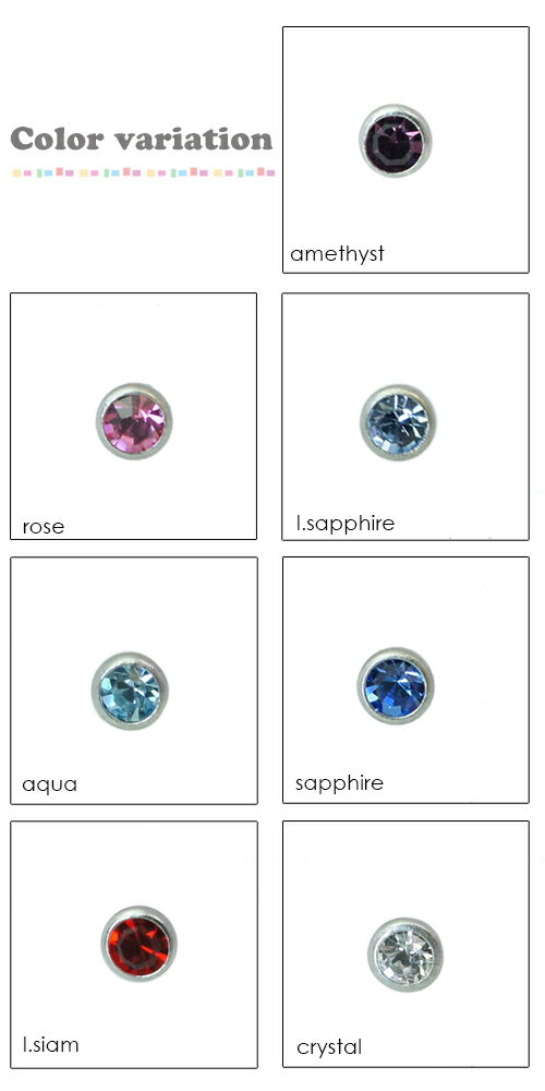インパクトのあるキラキラストーンが鼻ピアスに映えます カラーはamethyst,rose,l.sapphire,aqua,sapphire,l.siam,crystalの7つからお選びください。