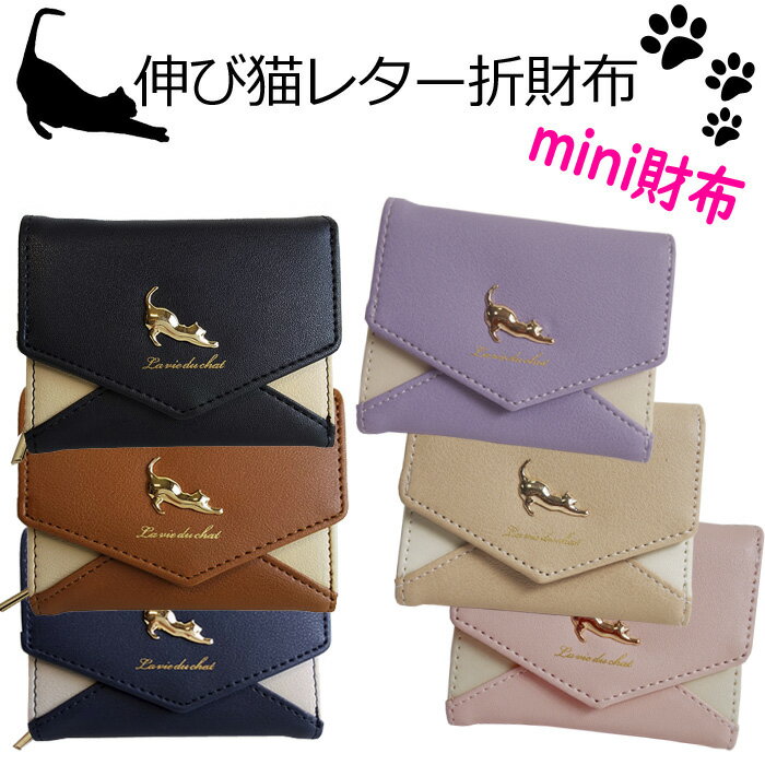 伸び猫レター 折財布 ミニ財布 三つ折財布 レディース財布 コンビカラー キャット ネコ好き ねこ足あと 肉球 jw-0266 【RCP】 【コンビニ受取対応商品】