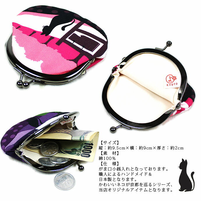 がま口 2.6寸がま口小銭入れ ぐりネコ がま口コインケース 日本製 【made in Kyoto】オリジナル gamaguchi がまぐち 選べる11種類 財布