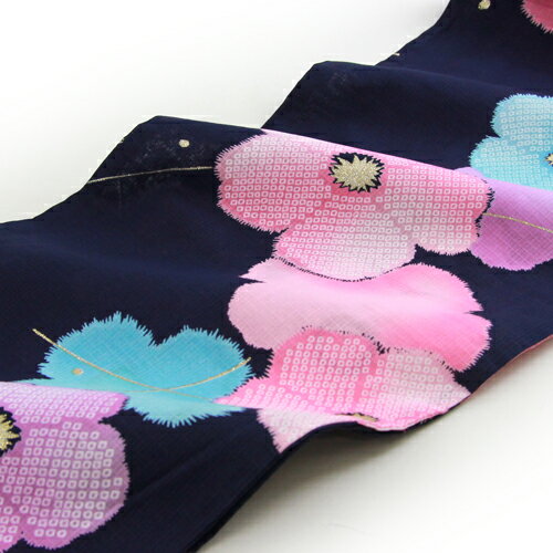 新作浴衣3点セット花火大会・夏祭り・盆踊りなどの今年の夏の楽しいイベントをお気に入りの新しい浴衣で楽しみませんか?紺地に花びらに鹿の子模様の入ったカラフルなお花がキュート。
