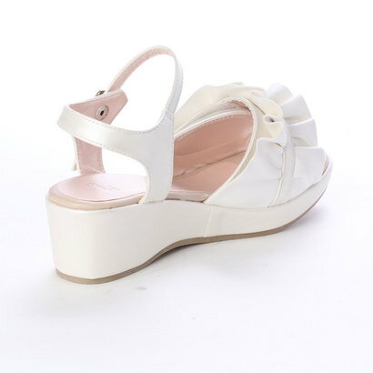 甲部分フリルはマジックテープ付きで調節可能◎ 約4のヒールですが、前部分の1.2cmの厚みで高さをそこまで感じることなく履いて頂けます。